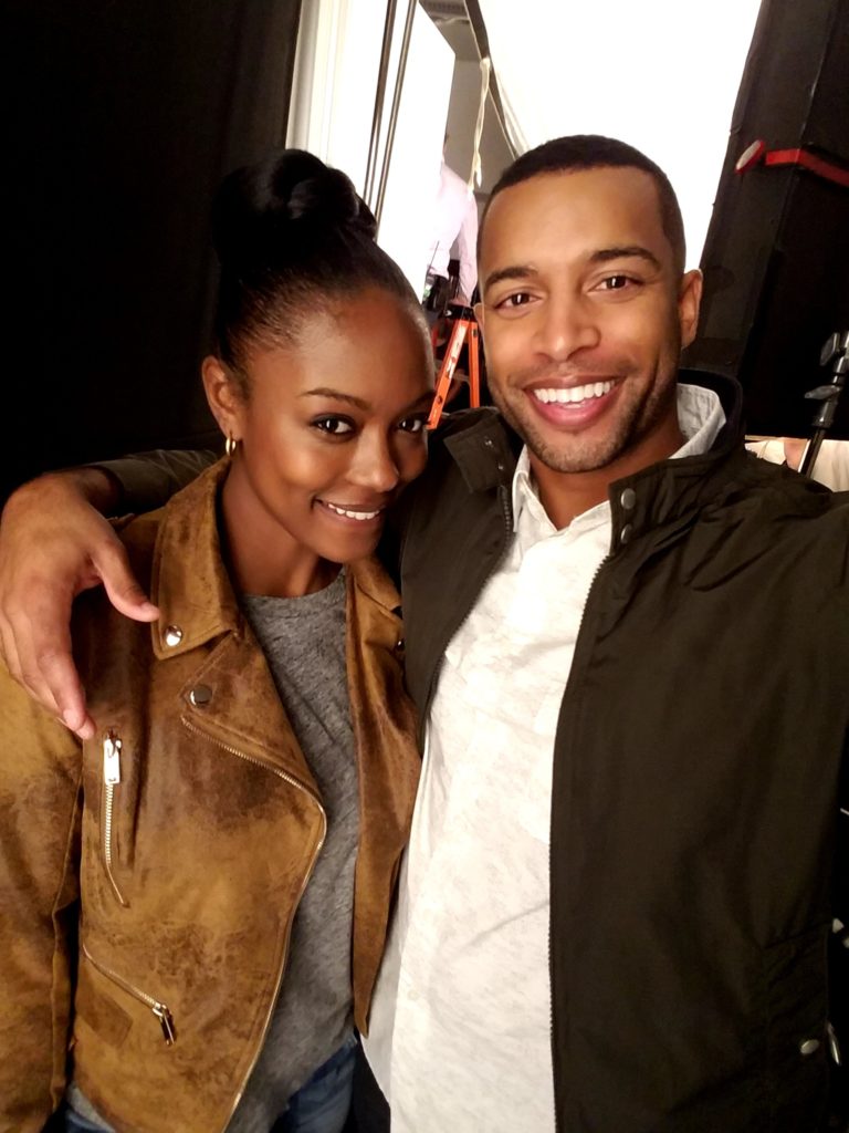 Here’s a behind the scenes shot of actress Ciarra Carter and myself. The casting gods seem to think we would make a good couple. What do you think? 🙂